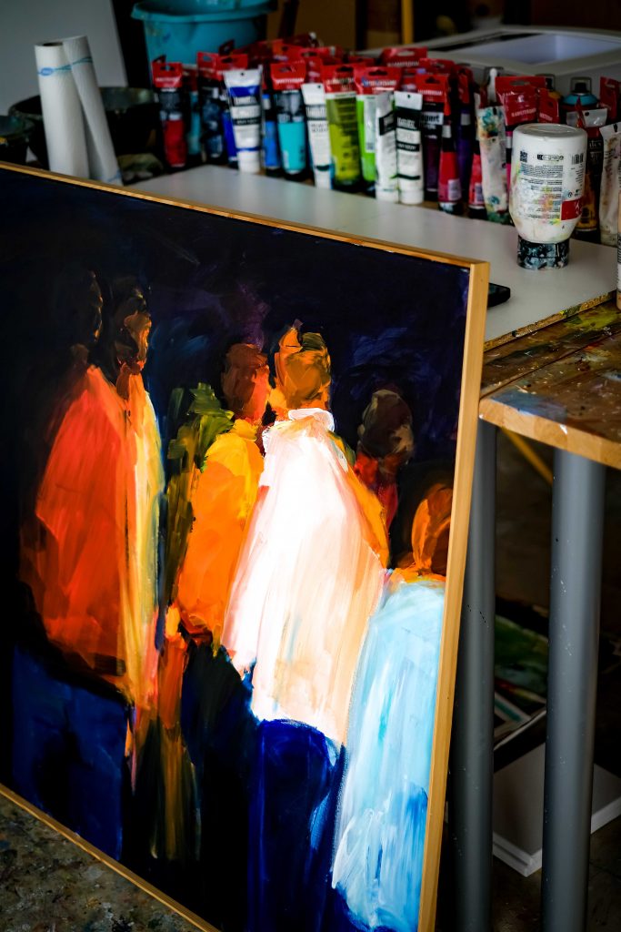 Farbe berührt, weil sie wagt. Stille berührt, weil sie lässt. Das Auge springt. Die Hand verweilt. Der Schritt verlangsamt sich. Der Besucher lächelt irgendwo zwischen Bild und Becher. Jeder Mensch kennt diesen Ort. Jeder weiß um die Kraft des Dazwischen.