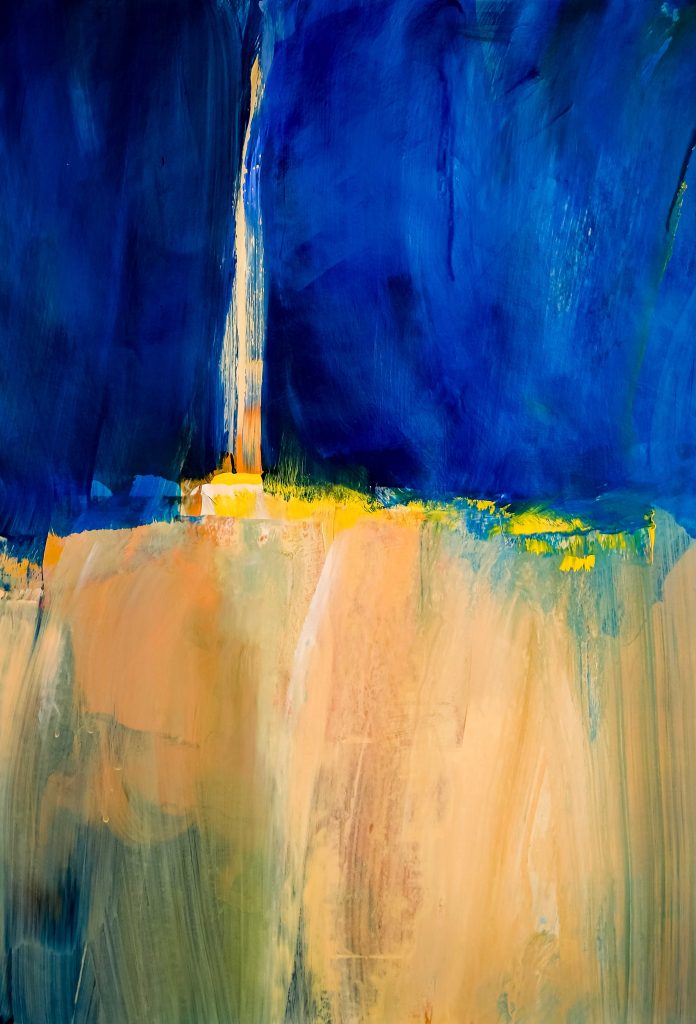 Die Bilder von Roswitha Schumacher-Kuckelkorn sprechen in dieser Lautstärke. Farben drängen nach vorn. Helles Braun stößt an Gelb. Blau lacht über Grün. Die Leinwand atmet Fülle. Der Raum, die Leinwand, füllt sich mit Blicken. Die Augen der Besucher trinken. Das Herz geht mit. Alles zeigt sich. Alles will gesehen werden.